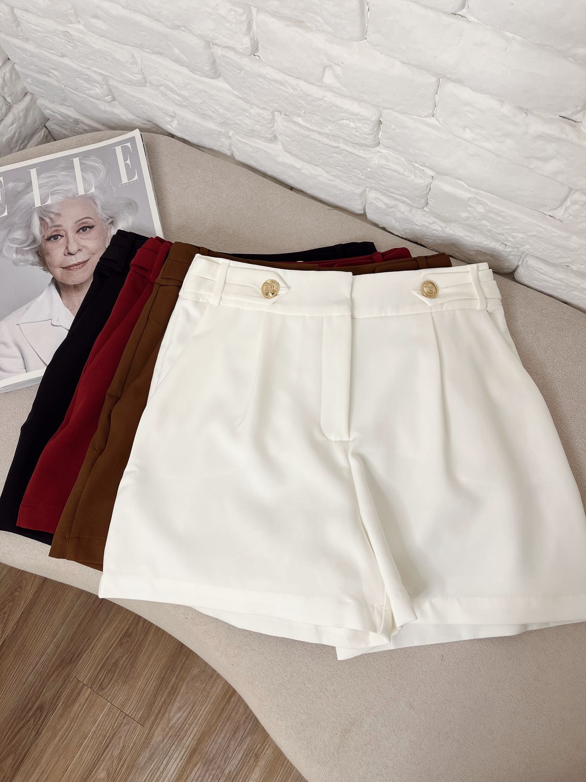 O Shorts Michele une elegância e praticidade em uma peça atemporal. Confeccionado em crepe de alfaiataria, possui toque sofisticado e caimento estruturado, ideal para composições refinadas nos dias mais quentes. O modelo tem cintura média com passantes, fechamento frontal e detalhe de botões dourados decorativos que conferem um toque clássico ao design. Conta ainda com bolsos laterais funcionais e barra com acabamento limpo, valorizando a silhueta com leveza.