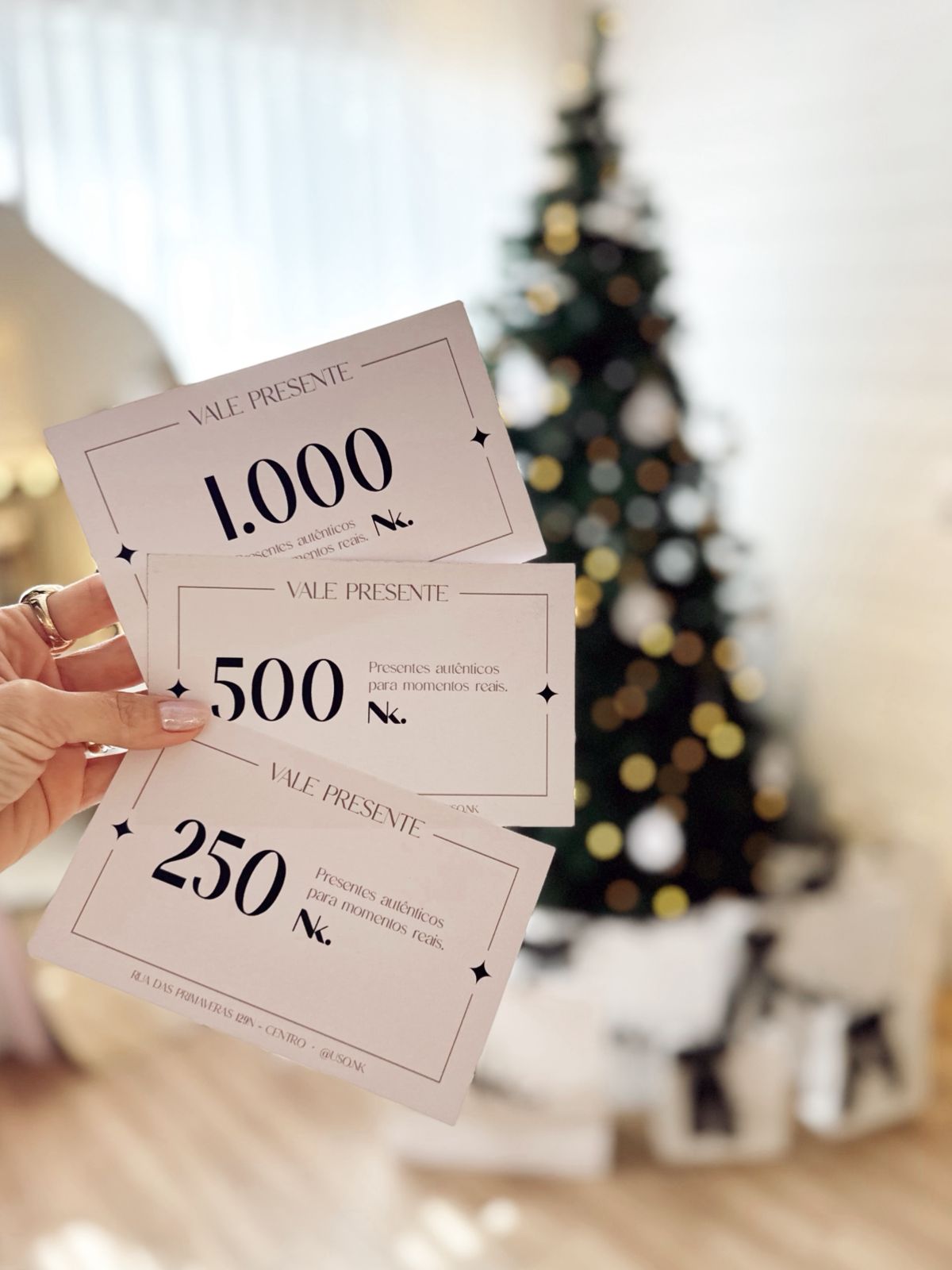 O Vale Presente NK no valor de R$500 oferece uma experiência completa, permitindo escolher entre peças e produtos que traduzem autenticidade, elegância e significado.